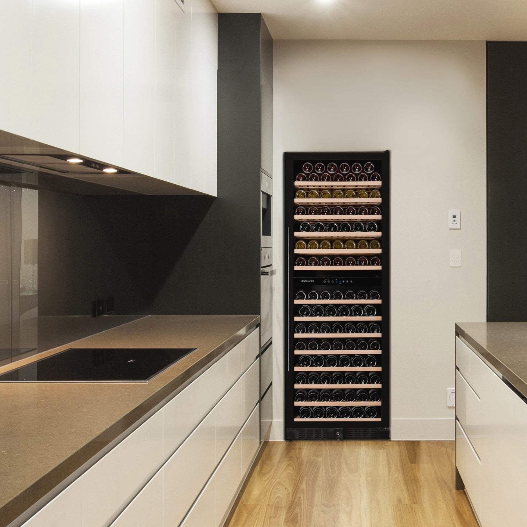 Our mid-sized freestanding wine coolers have a capacity of up to 102 Bordeaux bottles and are generally only suited for installation within a home where the ambient temperature is relatively stable as they do not have the heating ability, only cooling.